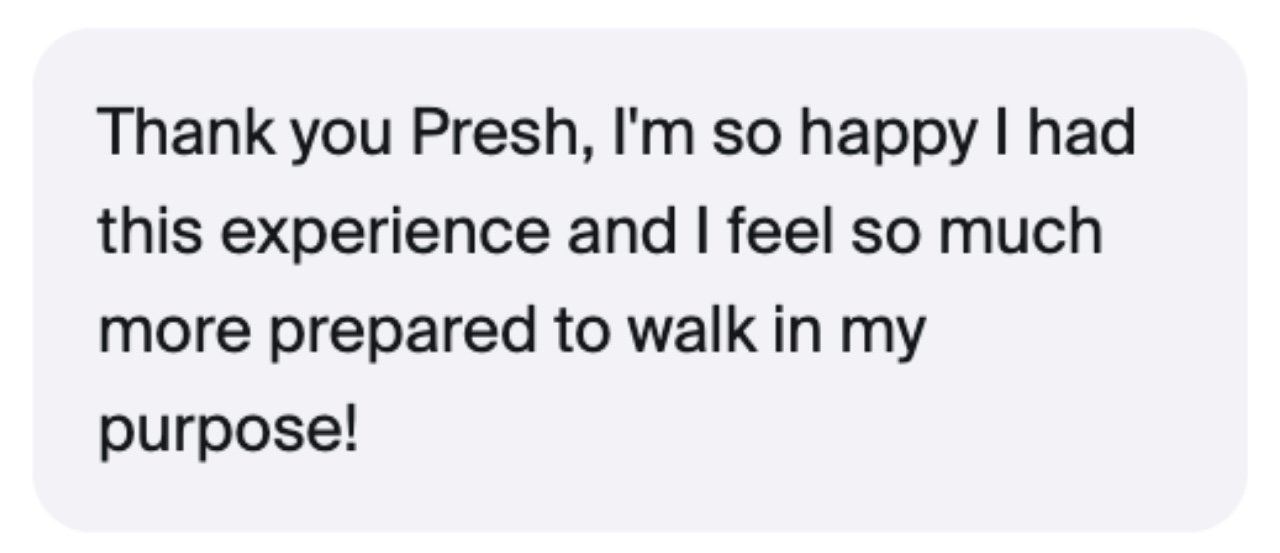 In the workshop, I explain how my first two businesses didn’t align with my purpose. The frameworks in all the products I offer are what allowed me to calibrate to my true calling, and is designed to help you do the same.